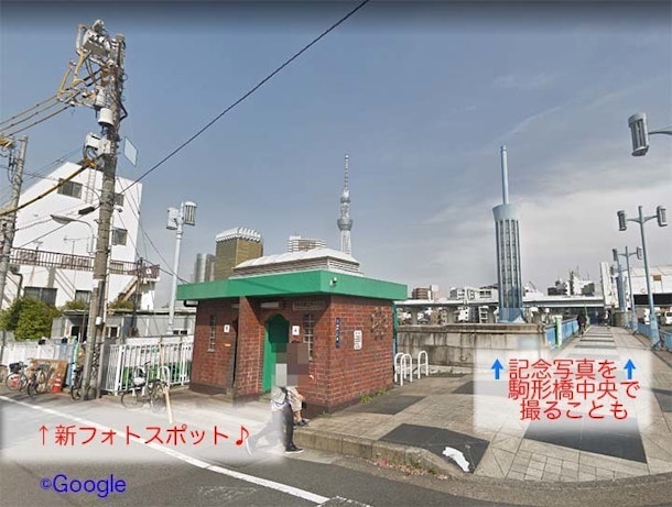 まずは、駒形橋にて、スカイツリーをバックに記念写真。(Afterのほうは吾妻橋)