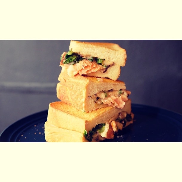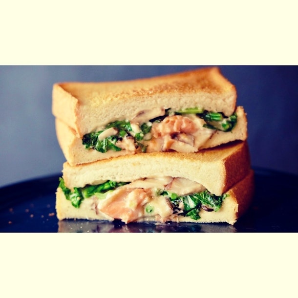 クリーム煮を利用してつくる、ベシャメル要らずのクロックムッシュ🥪中身はクミンフレーバーのサーモンです♩