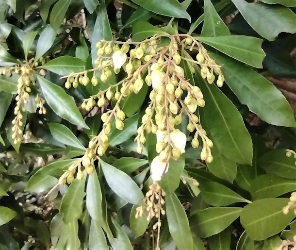 馬酔木(アセビ)の花が、つぼみを膨らませていました。可愛い。