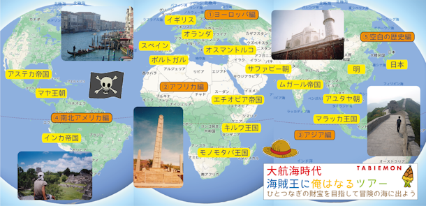 15~17世紀の史実をベースに、ヨーロッパからアフリカ、アジア、アメリカの各大陸へ。