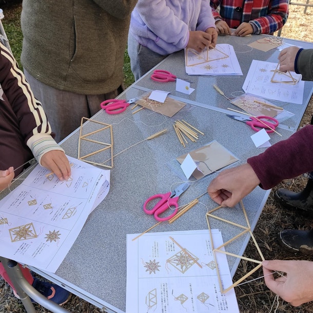 長野市で栽培した麦わら(ストロー)を材料にヒンメリを作ります。
