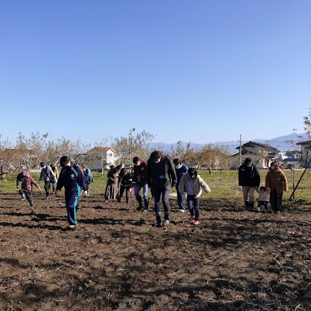 2019年に発生した台風による水害の被害を受けた「長野市長沼地区」でのイベントです。被災者支援団体HopeAppleと一緒に、11月に畑にライ麦の種を蒔きました。