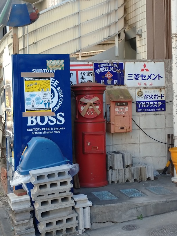 目黒区八雲。高級住宅地に突如レトロなポストと看板が。