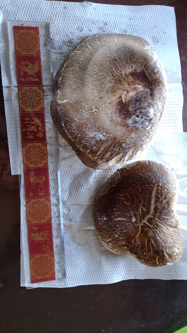 雨が降らず椎茸が大きくならないため、最高品質で冷凍したものを提供する予定です。巨大で3cmの肉厚椎茸は、天ぷらよりもバター醤油ステーキがお薦め💕
