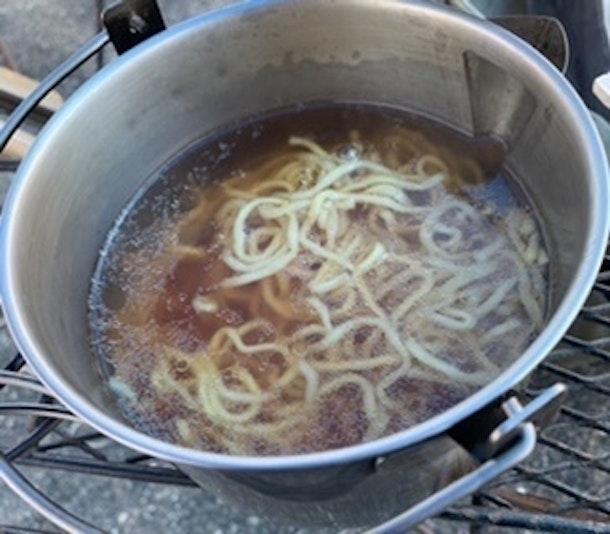 それでも間もなく火もつき、美味しく焚き火ラーメンをいただきました。