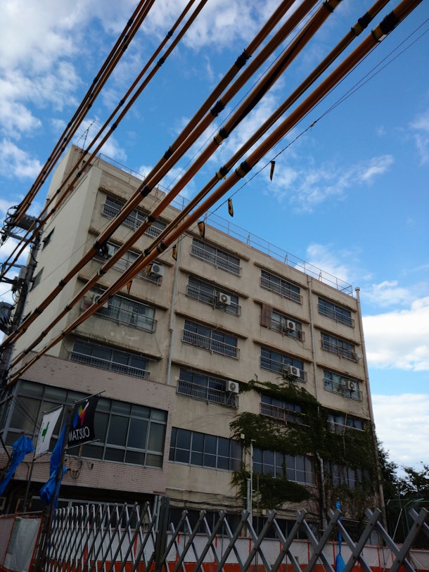 目黒区三田。目黒清掃工場が目黒川沿いに聳え立つ。