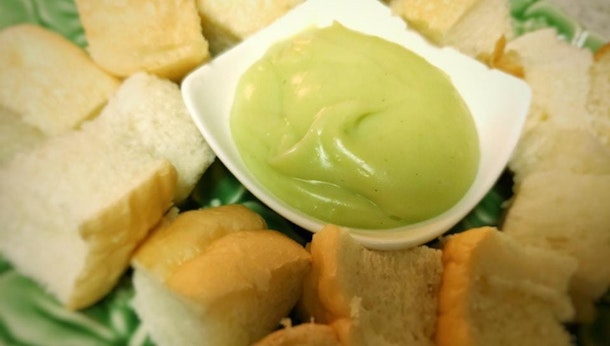 カヤージャムは香りの良いパンダンリーフで作ったきれいなグリーンのカスタードクリームのことです。タイでは蒸したパンや、揚げパンに付けて食べます。朝が忙しい人が屋台で買ってオフィスで食べる人気な朝ごはんメニューのひとつです。