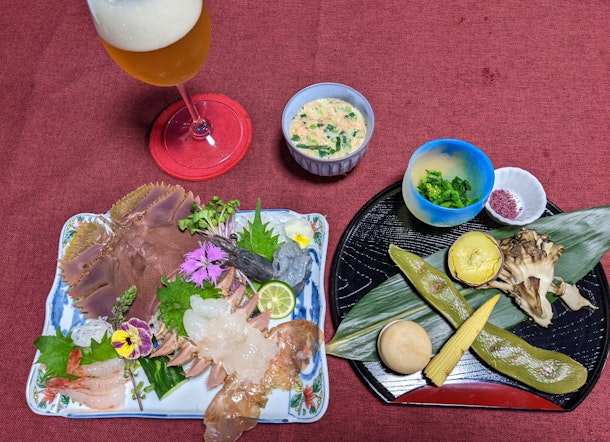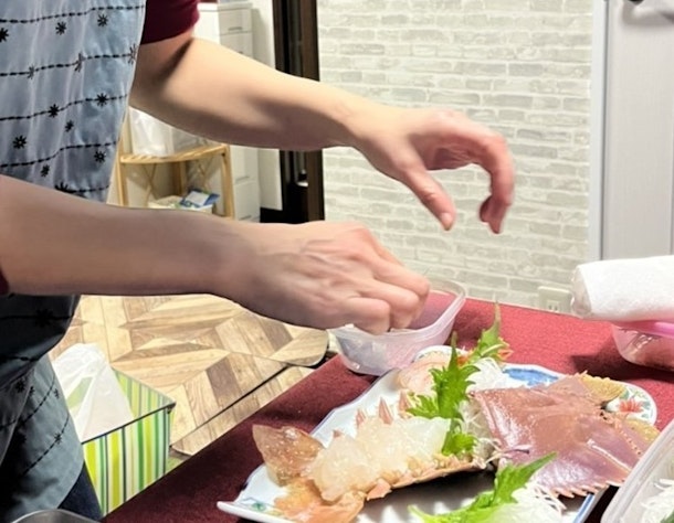 ゲストさんが作るエビの進化刺身盛り合わせ