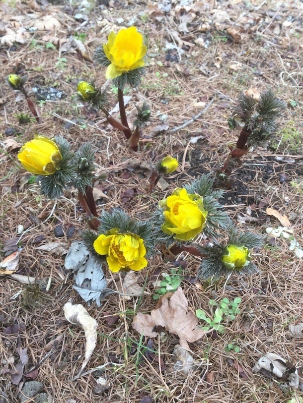 フクジュソウの花はそろそろ終わりに近づき、葉が茂り始めています。次は何の花が咲くかな?と思っていたらまた雪。春は行きつ戻りつ、ゆっくりゆっくりやってきます。今年は去年より春が遅い感じがします。
