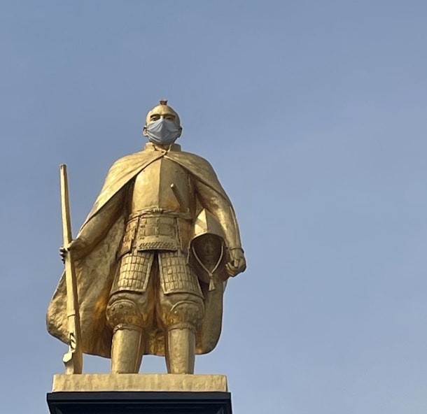 ちなみにこちら、岐阜駅前の黄金の織田信長像。こういったご時世なのでマスクをしていらっしゃいました(笑)