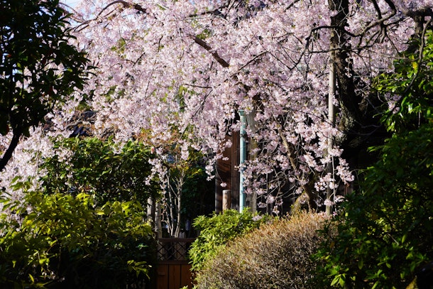 庭のお隣には、しだれ桜。本日、ともに咲き誇っていました。