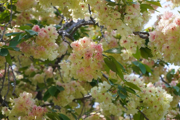 花はさかりを過ぎるころ、ほんのり紅く染まるので「美人桜」とも呼ばれるらしい。