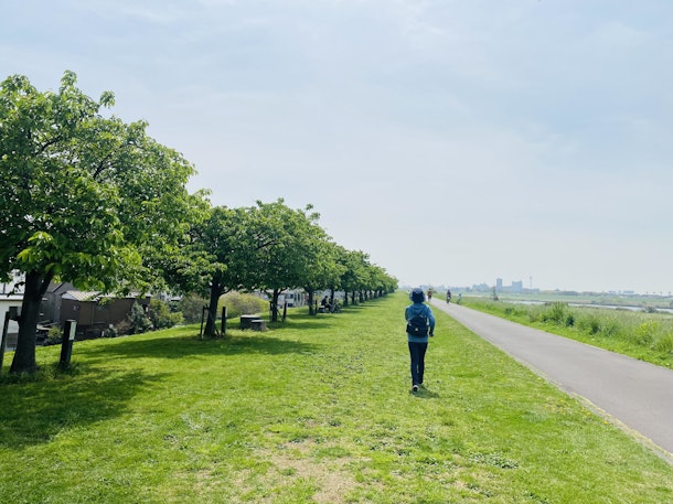 桜は終わってしまっていましたが、河津桜の新緑は素晴らしいし、真夏のような暑さの中にもときおり江戸川の土手を吹く風はとっても気持ちよかったと思います。。