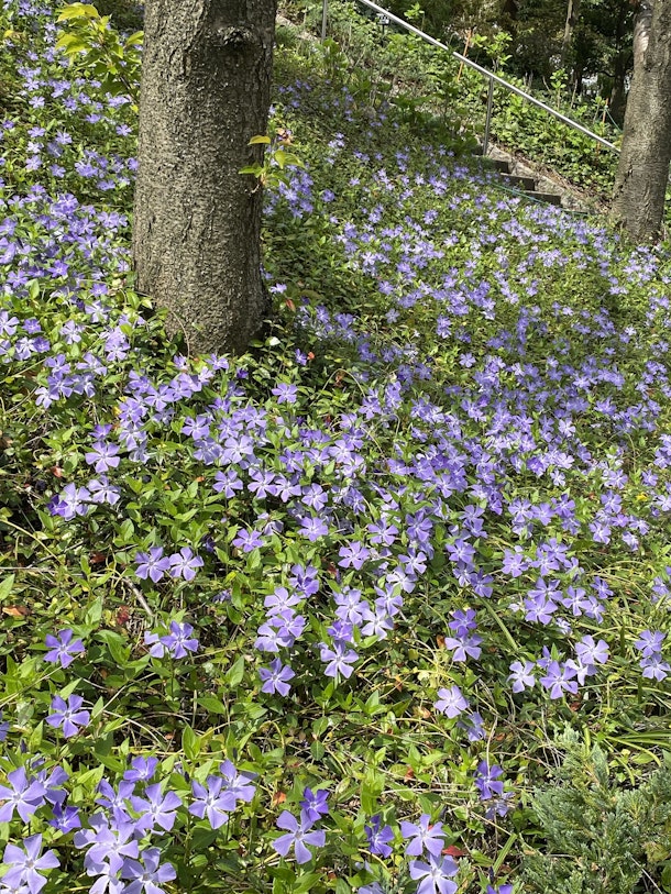 紫色のツルニチニチソウや黄色が鮮やかな菜の花はたくさん咲いていて、お花をゆっくり鑑賞する時間も取れました。