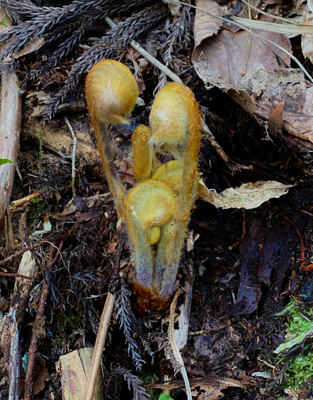 ある時にそんなシダ植物と全く違う黄金の綿に包まれたシダ植物をみた