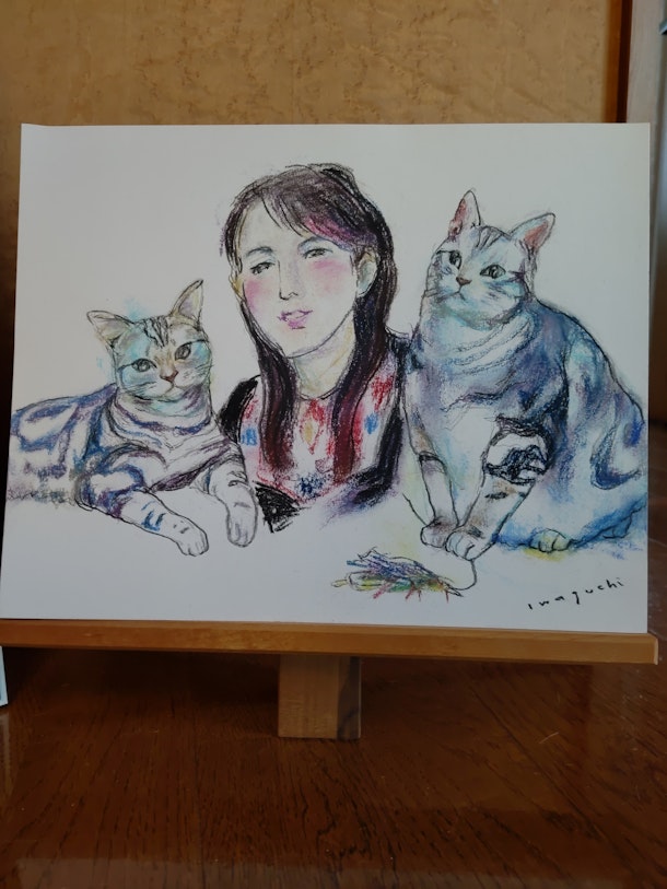 オプショナルとして、愛猫も一緒に描いて頂きました=^_^=
