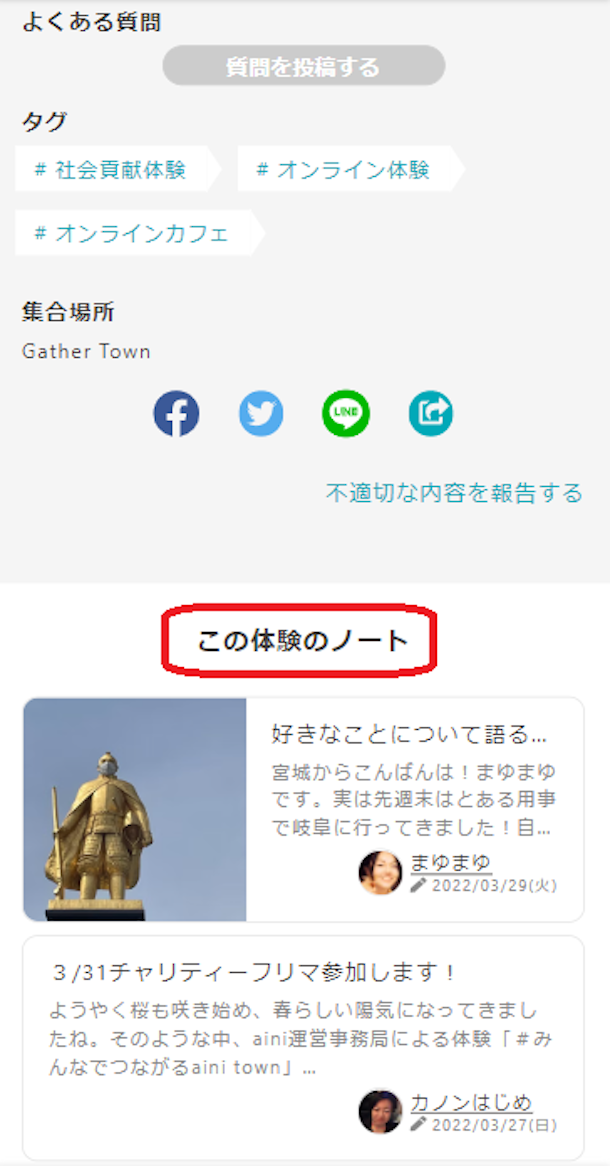 体験ページの情報を補完する意味でも、開催レポートや体験作成いたった思いなどをノートに書いて、リンクを貼っておきましょう!