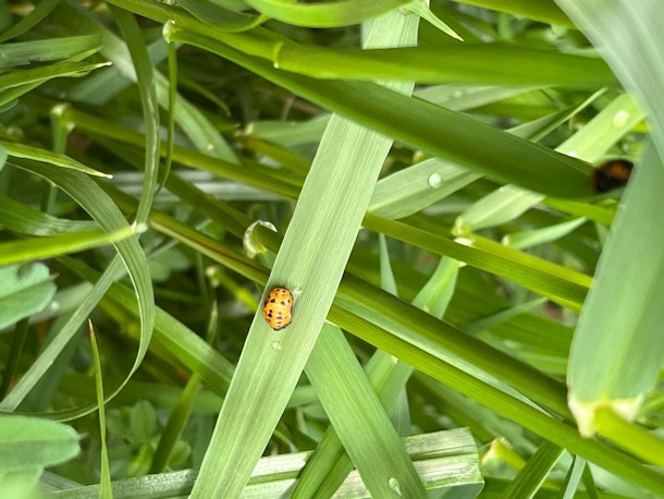 川に近づいてきたとこで、大量のテントウムシの幼虫・さなぎ・成虫が混在するところを発見❣