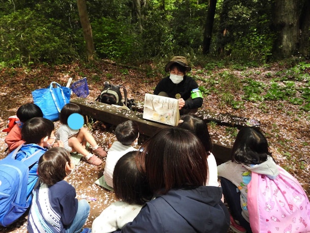 雑木林では、自然観察指導員さんによる雑木林の紙芝居。子ども達は夢中で聞いています。