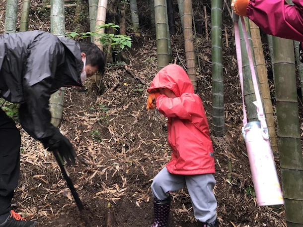 幻想的に霞む霧の中で採った筍。お疲れ様でした!