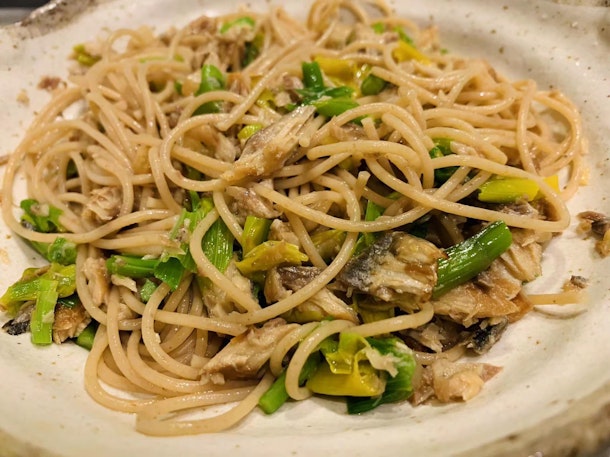 スモックニシンのニンニク味の全粒粉パスタに~~