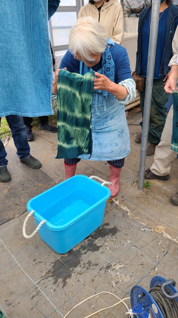 藍の染まり方にも個性が出て、色が人によって異なるのが面白かったです。この日一番綺麗なブルーを出したのは立正大学 後藤教授!!