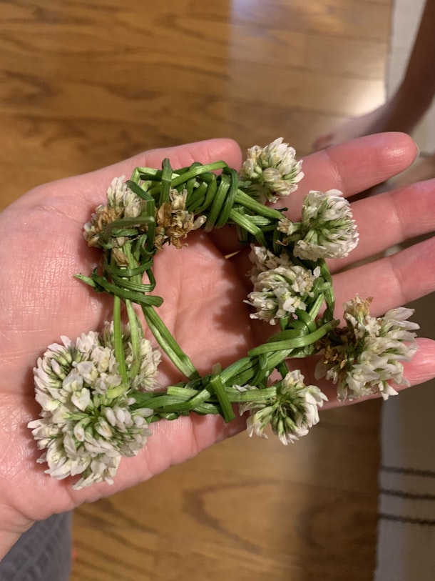 ※ここで娘は飽きてしまって(新井さんごめんなさい!)シロツメクサで花冠を作り始めました。それを見た悦子さんが後から話しかけてくれて、二人でなにやらお話していました。何度も”来てくれてありがとう!”とおっしゃる悦子さんが印象的でした。こちらこそです。