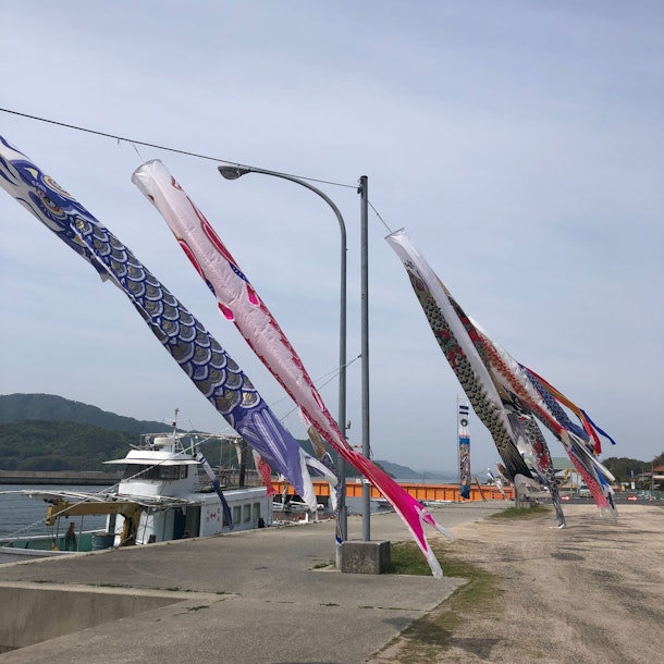 (今日の写真は、うちの近くの港で泳いでいるこいのぼりです)