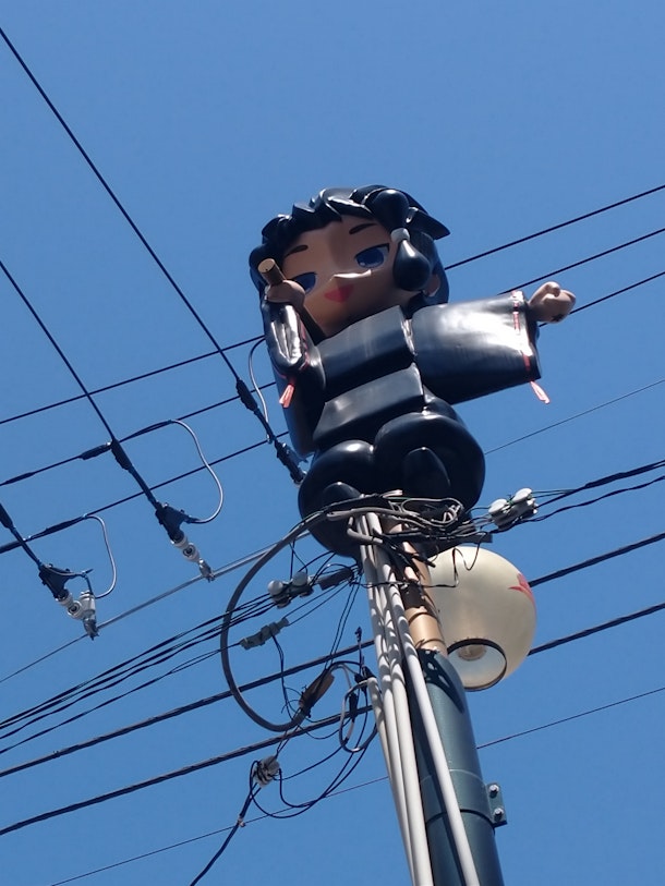 電柱の子供、男の子の名前は「Oh君」、女の子の名前は「はらちゃま」と言う。このエリアにある大原不動尊から名前をとっています。