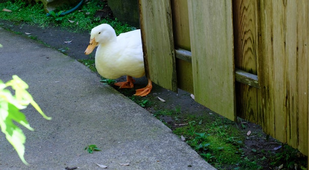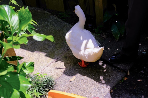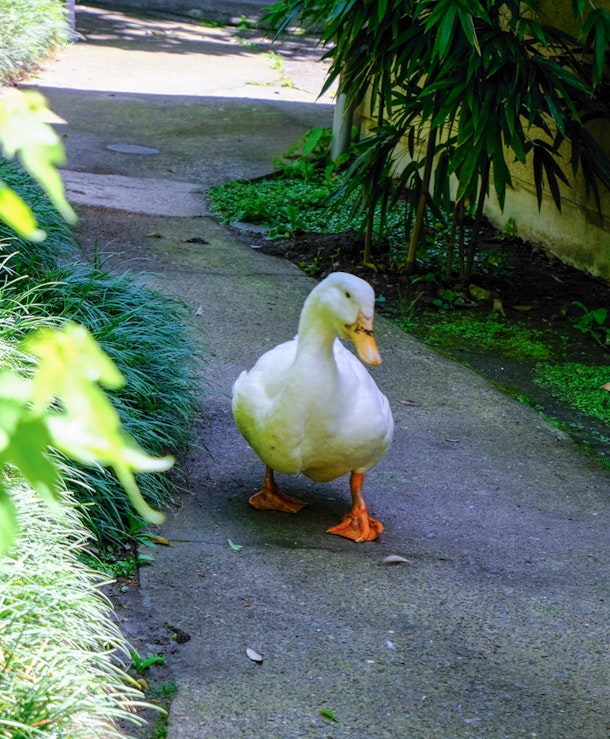 先日お散歩中のあひるくんと再会しました。雨上がりであちこちに池のような水たまりができたので、ご機嫌な様子です。
