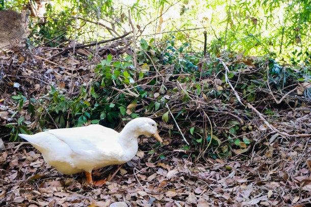 このあひるくんとは昨年12月11日開催の鎌倉フェ散歩ツアーの道中で、ばったりお会いしました。好物の木の実をくちばしでクラッシュして美味しそうに食べているところでした。