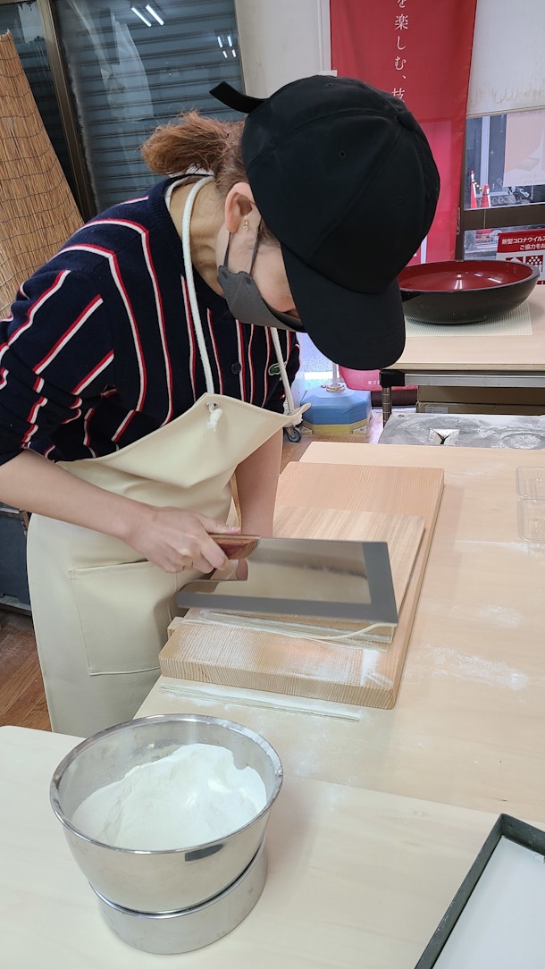 安藤さんが蕎麦打ち体験を開催するきっかけになったのは、江戸蕎麦の通人を表す民間の資格を運営する”江戸ソバリエ協会”からの依頼だそうです。安藤さんももちろんソバリエ且つ東京都麺類協同組合では理事を務め、後輩たちに蕎麦打ちの指導をしているそうです!だからこんなに上手く打てたのか、と納得しました。優しい安藤さんは”センスがいい”と誉めてくれましたがw。