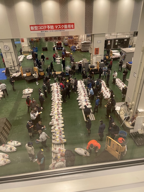 まずは、朝早起きしての「世界一のマグロを見て食べるツア-」。
