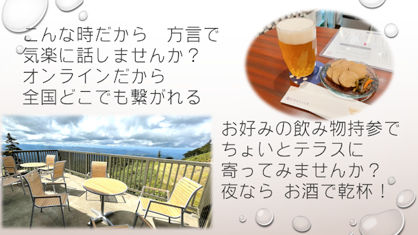 飲みながら「方言で旅気分のおしゃべり」 話してよし・聴いてよし | aini(アイニ)|夢中が集まる体験プラットフォーム (helloaini.com)
