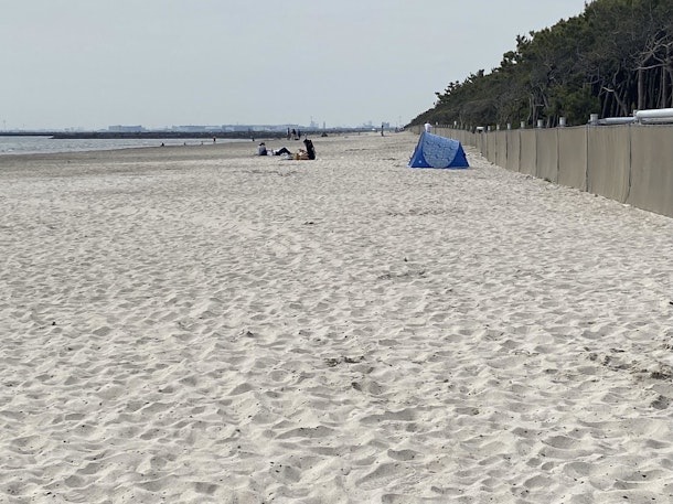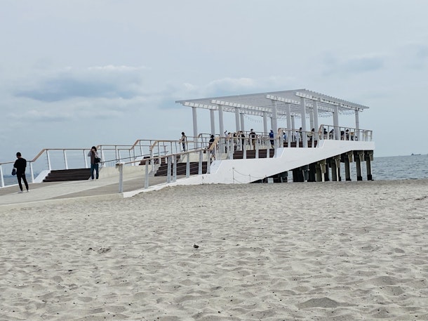白い砂浜で有名は稲毛海岸の”海にのびるウッドデッキ”が完成したので行ってきました。