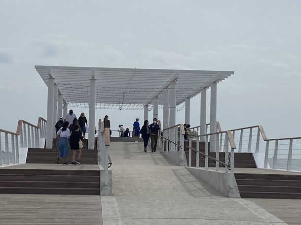 海にのびる白いウッドデッキ!