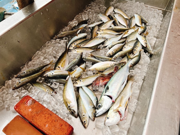中アジ主体で、イシモチ・大サバ・カサゴまじり。