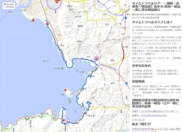こちらコースを歴たび舎(旧:ぬまづ歴たび)オリジナル地図システムで見ると
