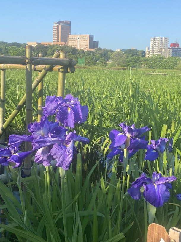 ウォーキングの目的地の一つ小岩菖蒲園の菖蒲が咲き始めました。