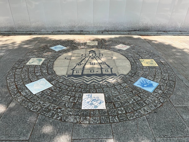 JR関内駅前の横浜らしい絵柄のタイルがあるところからスタート。