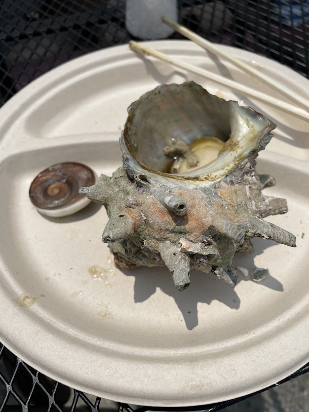 今回は、生でも行ける牡蠣「令和の怪物」。長崎のサザエ。豊洲市場で購入したのでお得感満載。