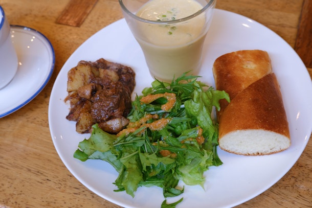 紫陽花が色づき始め、路地裏カフェ散歩が一段と楽しくなる頃。でもやっぱりいちばんの楽しみはカフェのお茶そして食事です。