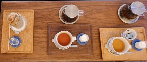 歩いた後は、再びお茶タイム。紅茶、珈琲、アイスカフェラテ....。乾いた喉を潤します。