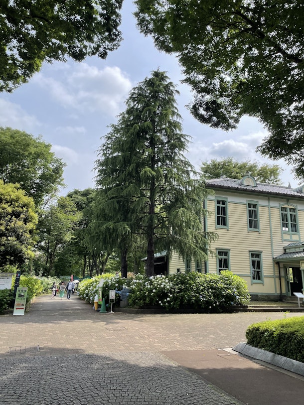 広い園内では、アジサイがたくさん植えられています。