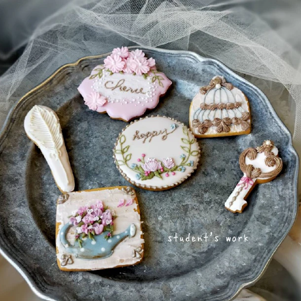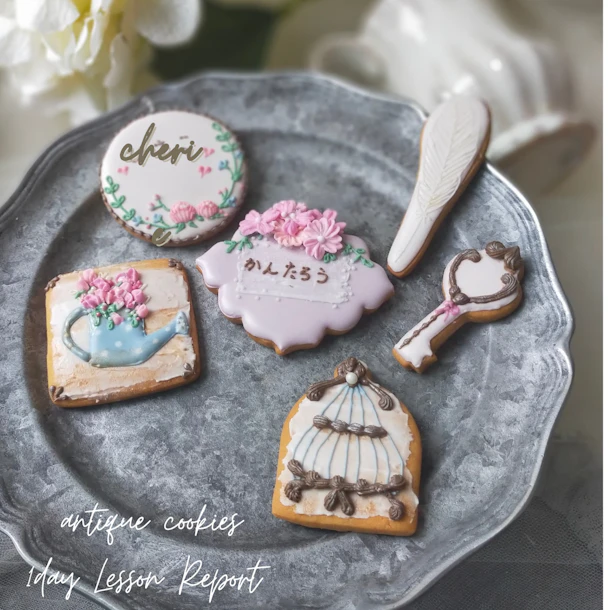 初めての生徒様もご経験ある方も皆さま、アンティーク感のあるステキなクッキーを完成されました。