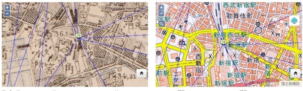 写真は国土地理院地図と東京西北部の1919年(大正8年)の地図とを