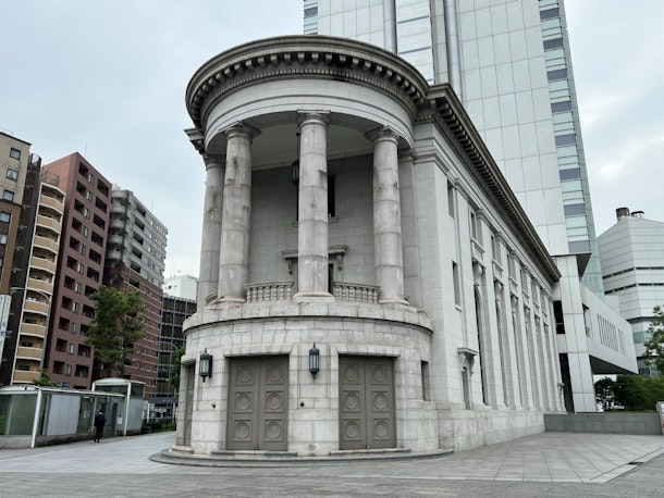 ギリシャ神殿を思わせる見事な列柱を持つ元第一銀行横浜支店。