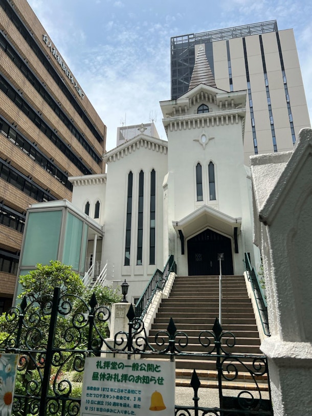 美しくもどこかかわいい横浜海岸教会。日本最古のプロテスタント教会です。
