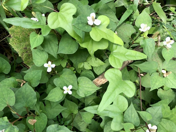 ドクダミ、ミカン葉、柿の葉、ビワ葉、