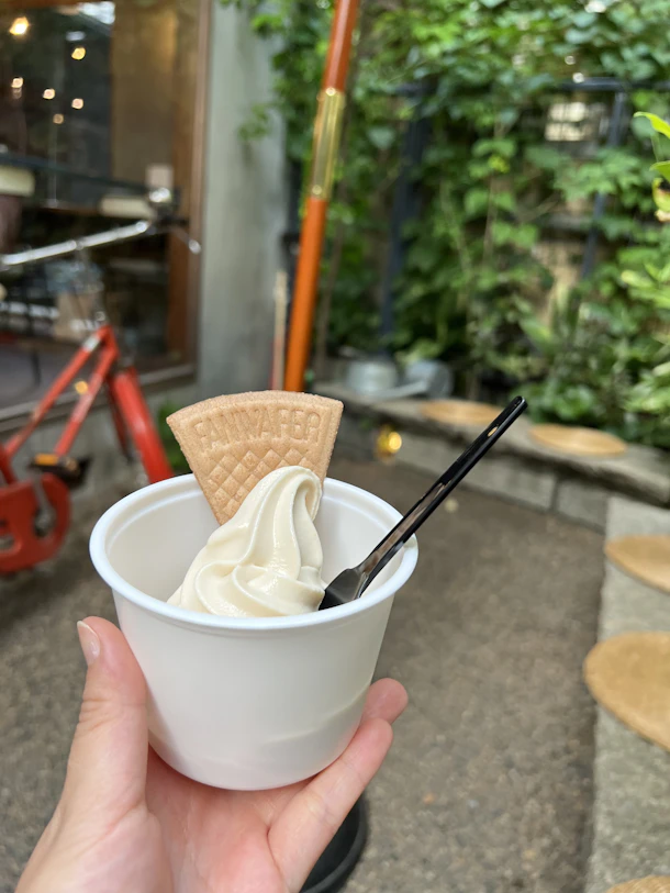 カップとコーン選べるのでお好きな方で頼みましょう。店内でもお外でも良し❣️